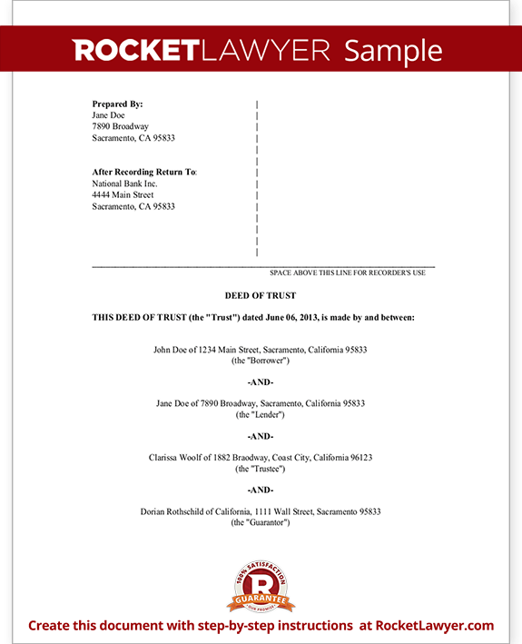DEED OF TRUST. Date: Grantor: New Property Owner. Grantor’s Mailing Address: New Property Owner’s Mailing Address. Trustee: Lender’s attorney (or your attorney if you are owner financing to buyer) ... Doc Retrieval